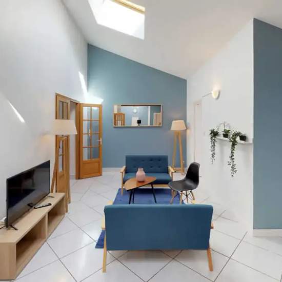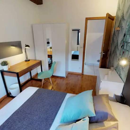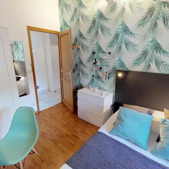 This lovely private bedroom in a fully equipped, furnished and all-inclusive flatshare in Lyon is a mix of comfort and design. It has got household furnishings, including a bed with pillows and duvet What is missing is your things to feel at home! The room can be locked if you need intimacy. The flatshare can be found in the Hôtel de Ville - Presqu'île neighborhood, in the heart of Lyon. Plenty of shops, public transports, restaurants are accessible close by. The apartment is on floor 5 with lift. It is entirely equipped and is composed of a...