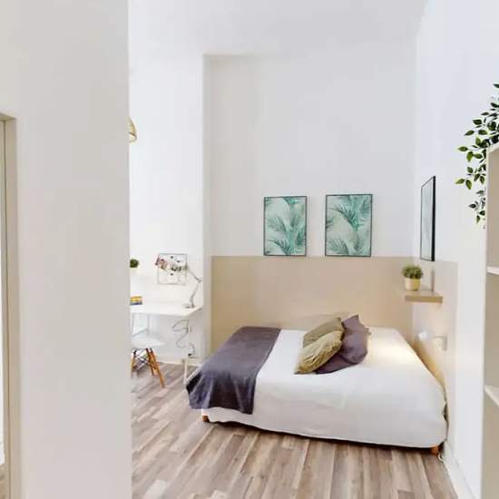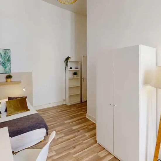 This lovely private bedroom in a fully equipped, furnished and all-inclusive flatshare in Lyon is a mix of comfort and design. It has got household furnishings, including a bed with pillows and duvet What is missing is your things to feel at home! The room can be locked if you need intimacy. The flatshare can be found in the Hôtel de Ville - Presqu'île neighborhood, in the heart of Lyon. Plenty of shops, public transports, restaurants are accessible close by. The apartment is on floor 2 with lift. It is entirely equipped and is composed of a...