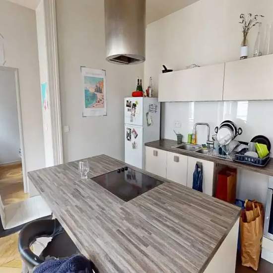 This lovely private bedroom in a fully equipped, furnished and all-inclusive flatshare in Lyon is a mix of comfort and design. It has got household furnishings, including a bed with pillows and duvet What is missing is your things to feel at home! The room can be locked if you need intimacy. The flatshare can be found in the Cordeliers neighborhood, in the heart of lyon. Plenty of shops, public transports, restaurants are accessible close by. The apartment is on floor 3 without lift. It is entirely equipped and is composed of a large kitchen...