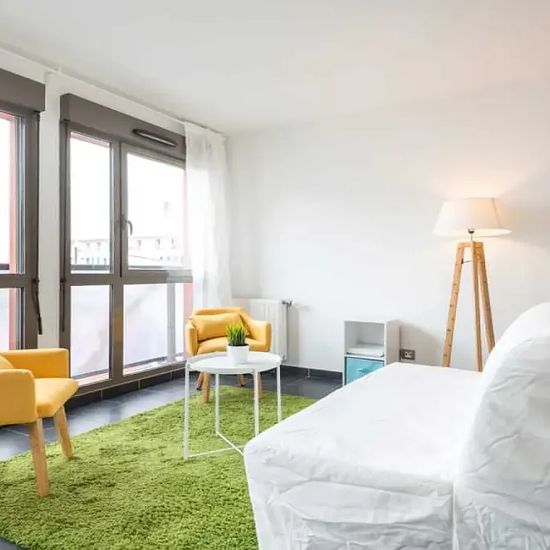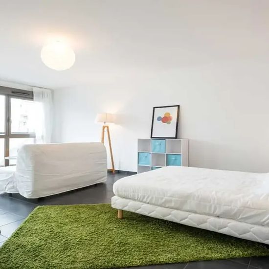 This lovely private bedroom in a fully equipped, furnished and all-inclusive flatshare in Lyon is a mix of comfort and design. It has household furnishings, including a bed with pillows and duvet. What is missing is your things to feel at home! The room can be locked if you need privacy. The flatshare is located in the Confluence - Presqu'île neighborhood, in the heart of Lyon. Plenty of shops, public transport, and restaurants are accessible nearby. The apartment is on the 3rd floor with a lift. It is fully equipped and consists of a large ...