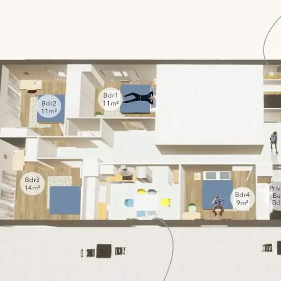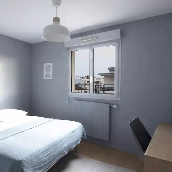 Room of 11m², fully furnished. Equipped with a double bed and a comfortable mattress. The bay windows let in natural light and give access to a balcony that surrounds the entire apartment. Ideal for long stays, this room includes a work area. The room also offers a storage closet and harmonious decorations, making it classic and elegant. This beautiful apartment is located in the center of Lyon, a few minutes from the Lyon Part-Dieu train station. Close to various faculties and schools, this area is very popular with students. Located on the...
