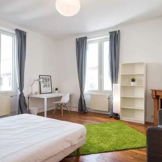 This lovely private bedroom in a fully equipped, furnished and all-inclusive flatshare in Lyon is a mix of comfort and design. It has got household furnishings, including a bed with pillows and duvet What is missing is your things to feel at home! The room can be locked if you need intimacy. The flatshare can be found in the Monchat neighborhood, in the heart of Lyon. Plenty of shops, public transports, restaurants are accessible close by. The apartment is on floor 0 without lift. It is entirely equipped and is composed of a large kitchen wi...