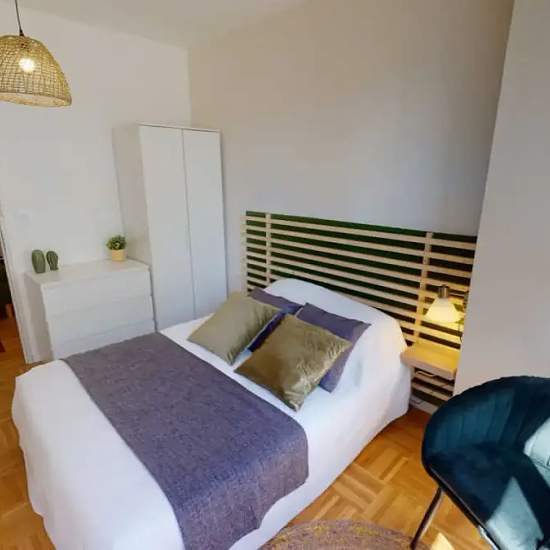 This lovely private bedroom in a fully equipped, furnished and all-inclusive flatshare in Lyon is a mix of comfort and design. It has got household furnishings, including a bed with pillows and duvet What is missing is your things to feel at home! The room can be locked if you need intimacy. The flatshare can be found in the Brotteaux neighborhood, in the heart of Lyon. Plenty of shops, public transports, restaurants are accessible close by. The apartment is on floor 1 with lift. It is entirely equipped and is composed of a large kitchen wit...