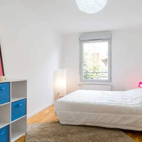 This lovely private bedroom in a fully equipped, furnished and all-inclusive flatshare in Lyon is a mix of comfort and design. It has got household furnishings, including a bed with pillows and duvet What is missing is your things to feel at home! The room can be locked if you need intimacy. The flatshare can be found in the Debourg - Gerland neighborhood, in the heart of Lyon. Plenty of shops, public transports, restaurants are accessible close by. The apartment is on floor 1 with lift. It is entirely equipped and is composed of a large kit...