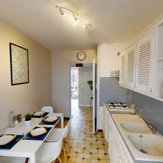 This lovely private bedroom in a fully equipped, furnished and all-inclusive flatshare in Lyon is a mix of comfort and design. It has got household furnishings, including a bed with pillows and duvet What is missing is your things to feel at home! The room can be locked if you need intimacy. The flatshare can be found in the Debourg - Gerland neighborhood, in the heart of Lyon. Plenty of shops, public transports, restaurants are accessible close by. The apartment is on floor 1 with lift. It is entirely equipped and is composed of a large kit...