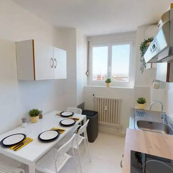 This lovely private bedroom in a fully equipped, furnished and all-inclusive flatshare in Lyon is a mix of comfort and design. It has got household furnishings, including a bed with pillows and duvet What is missing is your things to feel at home! The room can be locked if you need intimacy. The flatshare can be found in the Jean Macé neighborhood, in the heart of Lyon. Plenty of shops, public transports, restaurants are accessible close by. The apartment is on floor 8 with lift. It is entirely equipped and is composed of a large kitchen wit...