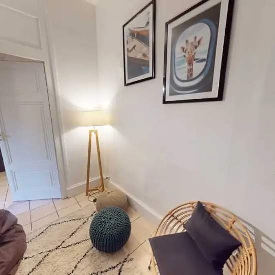 This lovely private bedroom in a fully equipped, furnished and all-inclusive flatshare in Lyon is a mix of comfort and design. It has got household furnishings, including a bed with pillows and duvet What is missing is your things to feel at home! The room can be locked if you need intimacy. The flatshare can be found in the Vaise neighborhood, in the heart of Lyon. Plenty of shops, public transports, restaurants are accessible close by. The apartment is on floor 1 without lift. It is entirely equipped and is composed of a large kitchen with...