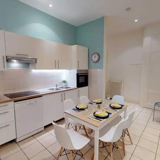 This lovely private bedroom in a fully equipped, furnished and all-inclusive flatshare in Lyon is a mix of comfort and design. It has got household furnishings, including a bed with pillows and duvet What is missing is your things to feel at home! The room can be locked if you need intimacy. The flatshare can be found in the Vaise neighborhood, in the heart of Lyon. Plenty of shops, public transports, restaurants are accessible close by. The apartment is on floor 1 without lift. It is entirely equipped and is composed of a large kitchen with...