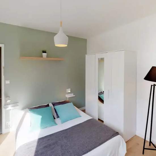 This lovely private bedroom in a fully equipped, furnished and all-inclusive flatshare in Lyon is a mix of comfort and design. It has got household furnishings, including a bed with pillows and duvet What is missing is your things to feel at home! The room can be locked if you need intimacy. The flatshare can be found in the Gorge-de-Loup neighborhood, in the heart of Lyon. Plenty of shops, public transports, restaurants are accessible close by. The apartment is on floor 1 with lift. It is entirely equipped and is composed of a large kitchen...