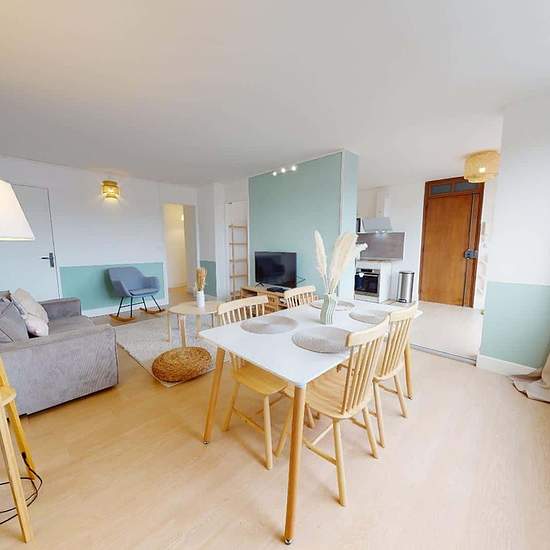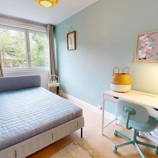 Oqoro vous présente cette colocation de 3 chambres de 75 m² située au 65 Rue De Saint-Cyr (Lyon). LA CHAMBRE Cette chambre dispose d'un lit double, un bureau avec une chaise et une lampe, une table de chevet et un placard mural. LES ESPACES COMMUNS Cette superbe colocation de trois chambres s'ouvre sur une cuisine équipée d'un mange debout avec deux tabourets, un réfrigérateur avec congélateur, une machine à laver, un lave vaisselle, un four, un micro-ondes, des plaques de cuisson avec une hotte, une bouilloire, un grille pain, un évier av...