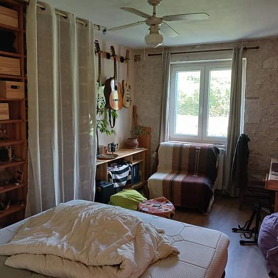 Cette maison meublée est disponible à la location dès maintenant, soit pour une colocation, avec deux chambres à 325€ et une plus grande à 350€, hors charges, soit pour le logement entier à 800€ hors charges. La maison de 130m2 est meublée et se situe au centre de Montaigu-de-Quercy, dans une impasse calme. Elle est à deux minutes à pied de la place du fameux marché de Montaigu-de-Quercy, de l'école, d'intermarché, de la pharmacie, mais aussi de la boulangerie, des 3 restaurants, du médecin, du tabac/pmu, de la salle de concert... Il y a un ...