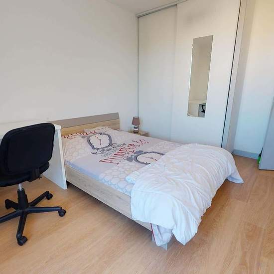 1577 Avenue De Maurin, MontpellierVISITE VIRTUELLE SUR DEMANDE LE LOGEMENT Spacest vous présente cette colocation de 5 chambres de 100m2 située au 1577 Avenue de Maurin à Montpellier. LA CHAMBRELa chambre 5 de 12,5m2 est accessible depuis le salon et offre un accès direct au balcon. Cette chambre est aménagée avec un lit double, un bureau, une chaise et des rangements. ESPACES COMMUNSUne grande pièce de vie composée du salon à droite et de la cuisine à gaucheLa cuisine est moderne et équipée (dont lave vaisselle)Une loggia avec un placard (o...
