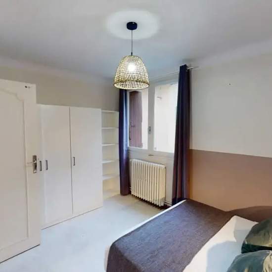 This lovely private bedroom in a fully equipped, furnished and all-inclusive flatshare in Montpellier is a blend of comfort and design. It comes with household furnishings, including a bed with pillows and a duvet. All that’s missing are your personal belongings to make it feel like home! The room can be locked if you need privacy. The flatshare is located in the Gares neighborhood, in the heart of Montpellier. Plenty of shops, public transport and restaurants are accessible nearby. The apartment is on the first floor and has no elevator. It...