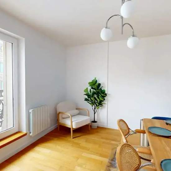 This lovely private bedroom in a fully equipped, furnished and all-inclusive flatshare in Paris is a mix of comfort and design. It has got household furnishings, including a bed with pillows and duvet What is missing is your things to feel at home! The room can be locked if you need intimacy. The flatshare can be found in the Saint Germain l'Auxerrois neighborhood, in the heart of Paris. Plenty of shops, public transports, restaurants are accessible close by. The apartment is on floor 4 with lift. It is entirely equipped and is composed of a...