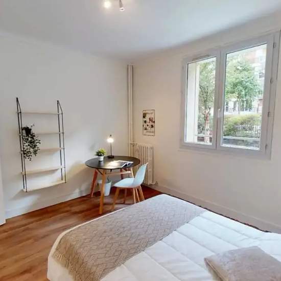 This lovely private bedroom in a fully equipped, furnished and all-inclusive flatshare in Paris is a mix of comfort and design. It has got household furnishings, including a bed with pillows and duvet What is missing is your things to feel at home! The room can be locked if you need intimacy. The flatshare can be found in the Batignolles neighborhood, in the heart of Paris. Plenty of shops, public transports, restaurants are accessible close by. The apartment is on floor 0 with lift. It is entirely equipped and is composed of a large kitchen...