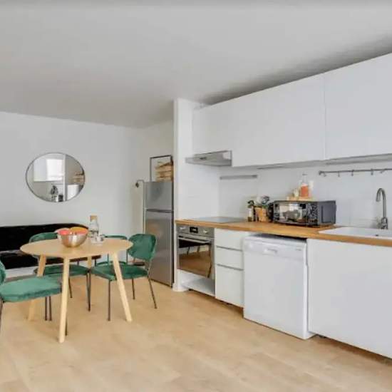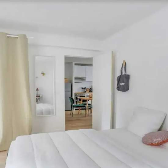 This lovely private bedroom in a fully equipped, furnished and all-inclusive flatshare in Paris is a mix of comfort and design. It has got household furnishings, including a bed with pillows and duvet What is missing is your things to feel at home! The room can be locked if you need intimacy. The flatshare can be found in the Amérique neighborhood, in the heart of Paris. Plenty of shops, public transports, restaurants are accessible close by. The apartment is on floor 2 without lift. It is entirely equipped and is composed of a large kitchen...