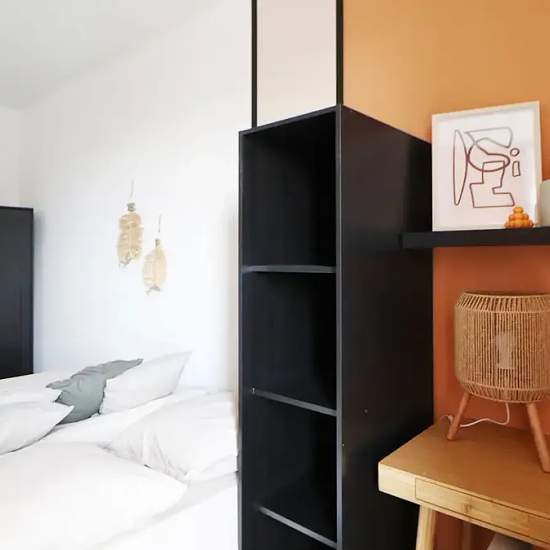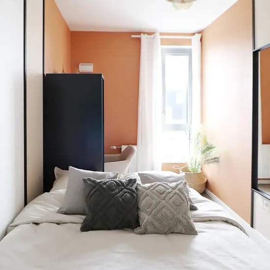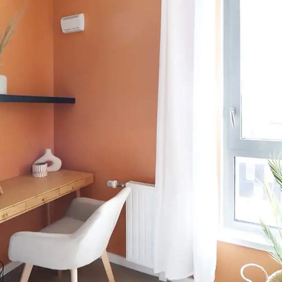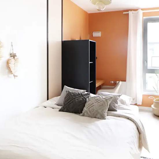 We open the doors of the most beautiful city: Paris! This 11 m² bedroom is located in an 90 m² apartment on the 6th floor of a secure residence in the 19th arrondissement. Rented fully furnished and equipped, this bedroom has a light decoration with touches of orange, and includes a night space behind which is a work space arranged with taste, like the rest of the bedroom. By opting for coliving, you are opting for seamless comfort. All the conveniences you need are at your feet: supermarket, decoration and DIY stores, bakery, gym, restauran...