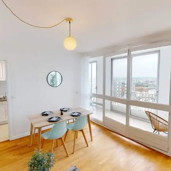 This lovely private bedroom in a fully equipped, furnished and all-inclusive flatshare in Paris is a mix of comfort and design. It has got household furnishings, including a bed with pillows and duvet What is missing is your things to feel at home! The room can be locked if you need intimacy. The flatshare can be found in the Vilette neighborhood, in the heart of Paris. Plenty of shops, public transports, restaurants are accessible close by. The apartment is on floor 23 with lift. It is entirely equipped and is composed of a large kitchen wi...