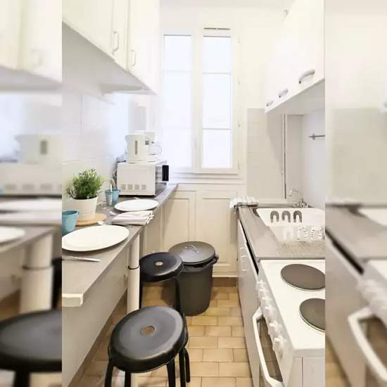 Large room of 16m², fully furnished. It has a double bed (140x190) and a bedside table with lamp. A working area is included, composed of a desk with chair and lamp. The room also has storage space: a wardrobe with hanging space and a shelf. Located in the 20th arrondissement of Paris, in the Saint Fargeau district, this 60m² apartment benefits from an ideal location, a stone's throw from the Père Lachaise Cemetery and close to all amenities. This apartment is located in a secure building with an elevator. It is composed of 3 bedrooms, a kit...