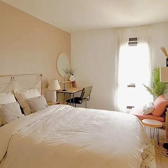 Welcome near Paris! We have choosen to settle in Puteaux, in a spacious 100 m² coliving apartment. Fully equipped and redesigned, you'll find this beautiful 13 m² room with a natural white and taupe decor. It includes a sleeping area, a desk, and even its own private shower room - perfect for your privacy! So, why choosing coliving in Puteaux? To enjoy a peaceful living environment just 10 minutes away from Paris. The rent for your coliving room includes internet, apartment home insurance and a deposit on rental charges. Like all the rooms i...