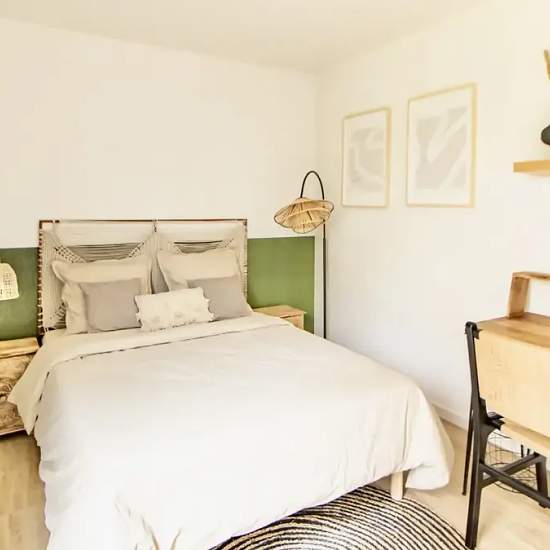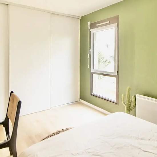 Welcome to Puteaux, where we welcome you into a beautiful 100 m² coliving apartment where this lovely 14 m² room is located. Tastefully refurbished and rented fully equipped, it features a sleeping area and a workspace. Adorned in white and green colors, you have found your cozy nook to relax in after a bustling day. But why choosing coliving? To enjoy a peaceful living environment just 10 minutes away from the capital. In coliving, your monthly rent already includes provisions for rental charges and the apartment's internet and home insuran...