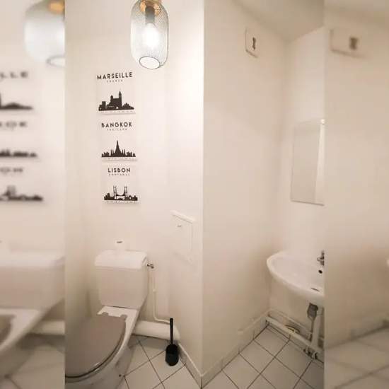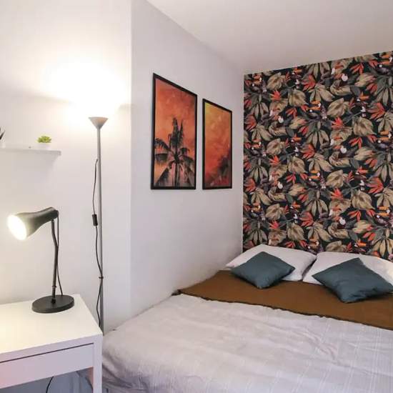 Room of 10m², fully furnished. It has a double bed (140x190) and a bedside table with lamp. A working area is included, composed of a desk with chair and lamp. The room also offers several storage spaces: a wardrobe with hanging space and a shelf. The advantage of this room is the access to the balcony. Located in Les Martinets, this 90m² flat is ideally situated a few steps from the Parc des Impressionnistes and the RER station and close to all amenities. The flat is located on the 6th floor of a secure building with digicode and caretaker ...