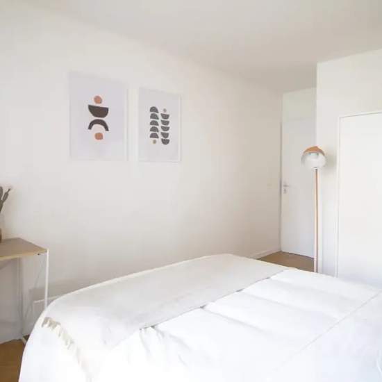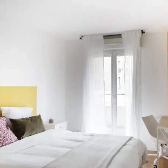 Discover a large modern room of 11 m², rented in a fully furnished coliving apartment of 86 m² on the 2nd floor of a building in Saint-Denis. Decorated in light tones punctuated by bright yellow color, this room will be unlike any other. You will feel at home thanks to the various spaces that this room includes: a beautiful and comfortable night space and a spacious work space. A large closet and multiple storage spaces complete this room, so you can put all your stuff and start your stay in the best way possible. So, what are you waiting fo...