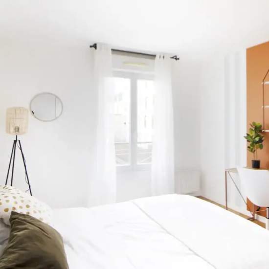 Discover a beautiful 10 m² room fully furnished in a 86 m² apartment located on the 2nd floor of a residential building in Saint-Denis. Its position and its shared balcony offer to its future occupant an unobstructed view of all Paris. The cocooning decoration of the room and its touches of mint color give it a unique character. You will also find in this room a beautiful work space composed of a desk and its essential basic accessories (chair, lamp). Finally, a large closet and multiple storage units make up this room so that you can store ...