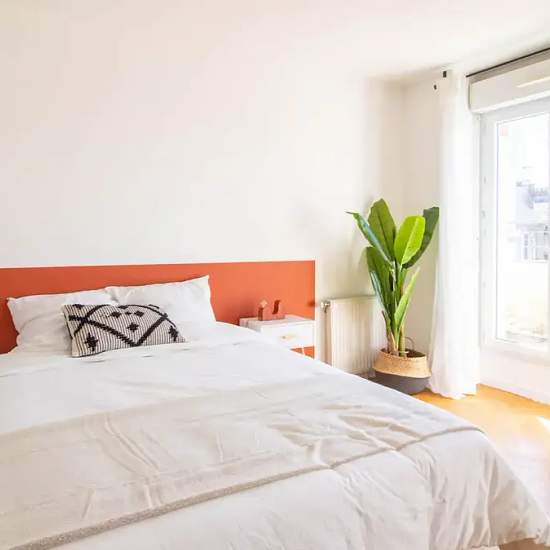 Discover this extra 23 m² bedroom for rent in Saint-Denis. Located on the 6th floor of a family residence, in an 90 m² apartment, this room benefits from a breathtaking view of Montmartre. It has, at its feet, all the conveniences and is only 10 minutes away from the metro line 12. Rented fully equipped, this modern and elegant bedroom will transport you to another universe thanks to its gray and terracotta colors, which remind you of the countries of the south like Italy. This bedroom includes three beautiful spaces: a night space equipped ...