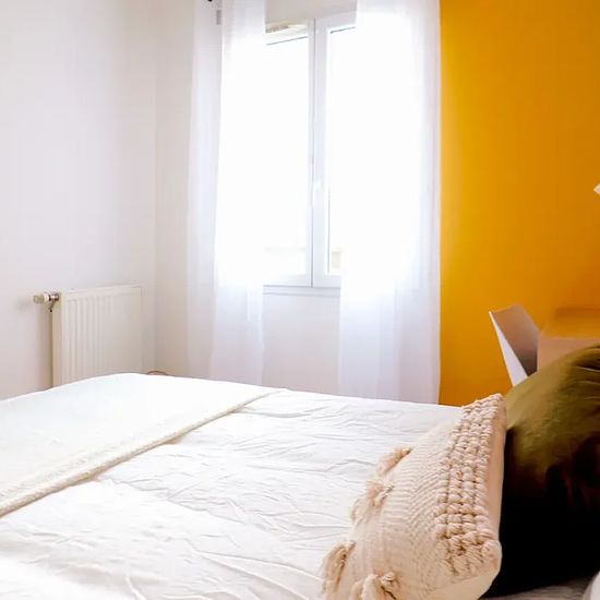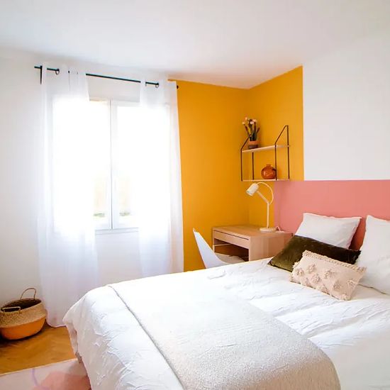 Discover a charming 10 m² bedroom to rent in a pleasant apartment of 105 m². Located on the 1st floor of a quiet residence in Saint-Denis, the bedroom offers you a clear view on the courtyard. Rented fully equipped, we have decorated the bedroom in shades of rust and steel blue to give it a real singularity. On the amenities side, this bedroom includes a sleeping area with a queen bed, a bedside table and lamp, and a work area, as well as a large built-in closet. It also includes a Wi-Fi connection so that you can enjoy your stay as much as ...