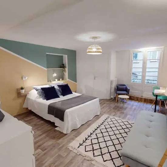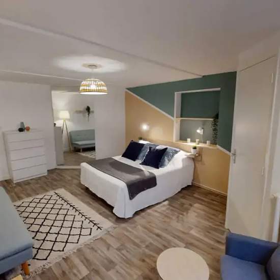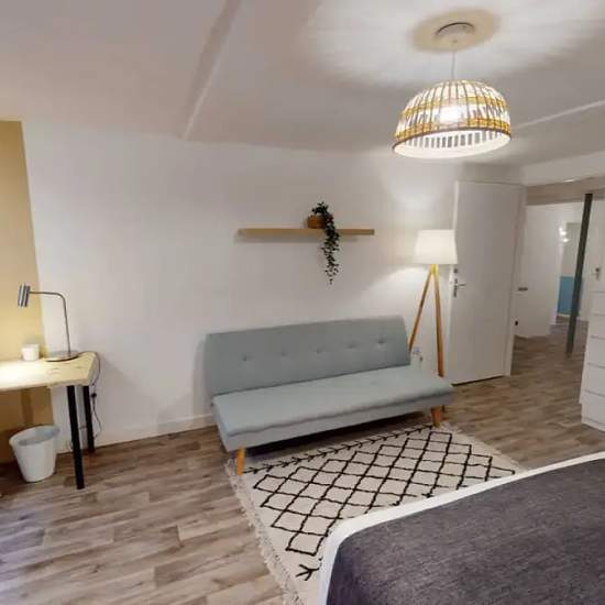 This lovely private bedroom in a fully equipped, furnished and all-inclusive flatshare in Toulouse is a mix of comfort and design. It comes with household furnishings, including a bed with pillows and a duvet. What’s missing are your things to feel at home! The room can be locked if you need privacy. The flatshare is located in the Capitole neighborhood, in the heart of Toulouse. Plenty of shops, public transport, and restaurants are accessible nearby. The apartment is on the 1st floor without a lift. It is fully equipped and consists of a l...