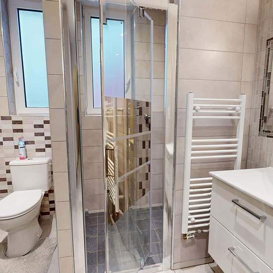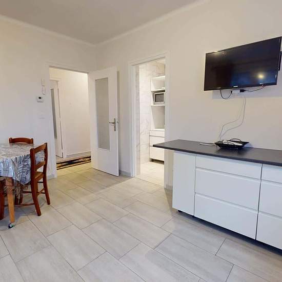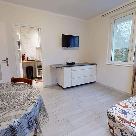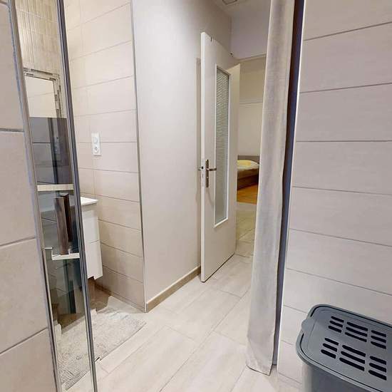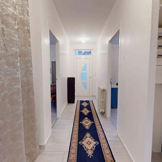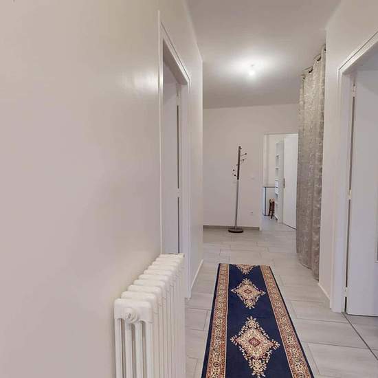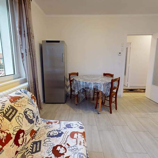 OQORO offers you this 80 m² shared flat, located in the commune of Vénissieux at 78 Rue Président Salvador Allende. APARTMENT This three-bedroom flat opens onto an entrance hall with a shoe cabinet and a built-in cupboard. The living room is furnished with a table and three chairs, a refrigerator, a BZ sofa bed, a storage unit, and a television. The adjoining kitchen is equipped with a microwave, a coffee machine, a toaster, a hob with an extractor hood, a washing machine, a double sink, and plenty of storage. The bathroom has a large showe...