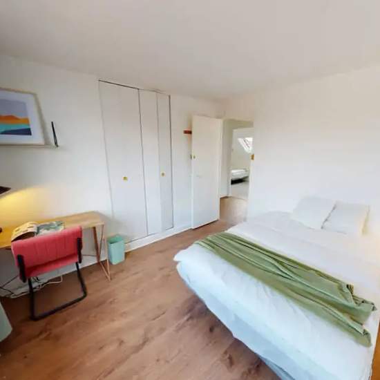This lovely private bedroom in a fully equipped, furnished and all-inclusive flatshare in Villejuif is a mix of comfort and design. It has got household furnishings, including a bed with pillows and duvet What is missing is your things to feel at home! The room can be locked if you need intimacy. The flatshare can be found in the Villejuif neighborhood, in the heart of Villejuif. Plenty of shops, public transports, restaurants are accessible close by. The apartment is on floor 0 without lift. It is entirely equipped and is composed of a larg...