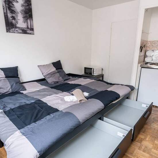 Welcome to this charming studio located in the Belleville area of Paris. This furnished property provides a cozy and fully equipped kitchen, as well as access to Wi-Fi, making it an ideal choice for a variety of tenants, including professionals, students, and couples. The property has been personally verified by Spotahome for your convenience, so you can book with confidence. Belleville is a vibrant and artistic neighborhood famous for its unique charm. Nearby, you'll find several remarkable attractions such as the Fresque Moutons Ballons, ...