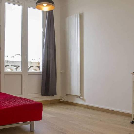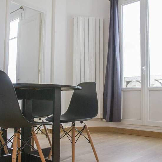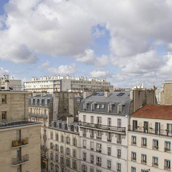 This is a beautiful 1-bedroom apartment. As you enter, you walk into the large and airy open-concept living room and kitchen area. This space is brightened by the natural sunlight that comes in through the large windows and elegant French doors that are situated on both sides of the room. From the small balcony, you have gorgeous sixth-floor views of central Paris. This apartment is located in a calm residential neighborhood. You'll find all of the amenities that you could ever need in this area. For example, the nearest Carrefour supermark...