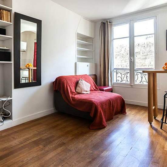 A bright, renovated studio apartment is available to rent in Paris's 18th arrondissement. This property only measures 15 m², but what it lacks in size, it makes for in charm. With wooden floors, high ceilings and pretty window bars, this apartment is typically Parisian. The interior consists of a main room which serves as a living area with 2 sofa beds for sleeping, and a partially equipped kitchen. The apartment is on Rue Feutrier in Montmatre, part of the 18th arrondissement. This is one of the most popular neighbourhoods in Paris - it is...