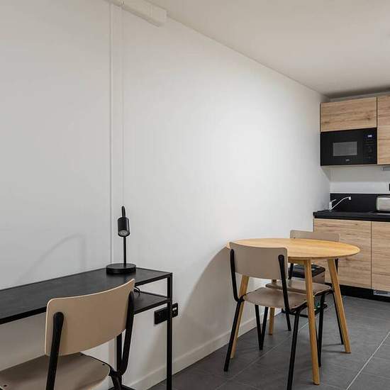 Our location in Paris is the ideal place to experience the vibrancy of the city while being part of the Habyt community. With a total of 24 flats and 32 rooms, the building features a laundry area on the first floor, and a community space where you can relax, meet new people, and enjoy all the perks of a flexible lifestyle. Our modern apartments each feature a spacious bathroom and a fully equipped kitchenette with the necessary appliances. Floor: 1st Floor