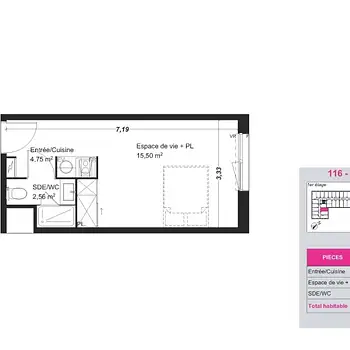 1 Room - Apartment - 19 m²76520, Franqueville st pierre