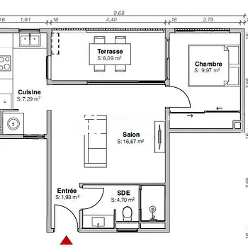 2 Rooms - Apartment - 41 m²98716, Pirae